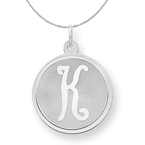 Sterling Silver, Makayla Collection, 20mm Disc Initial K Necklace