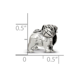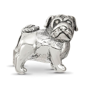The sculpted image of this miniature pug, captured in antiqued sterling silver, will win its way into your heart. It measures approximately 12 x 11mm with a 4mm core that is interchangeable as well as compatible with Reflections and other popular 3mm width bead style bracelets and necklaces.