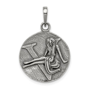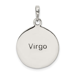 Sterling Silver Virgo the Virgin Zodiac Embossed Circle Pendant