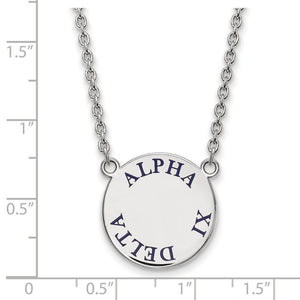 Sterling Silver Alpha Xi Delta Large Blue Enamel Necklace