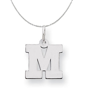 Silver, Amanda Collection Small Block Style Initial M Necklace