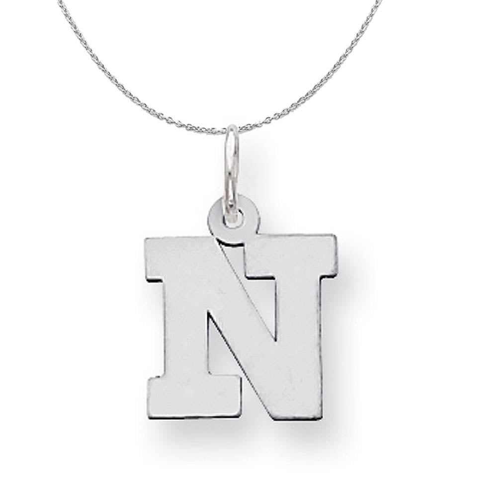 Silver, Amanda Collection Small Block Style Initial N Necklace