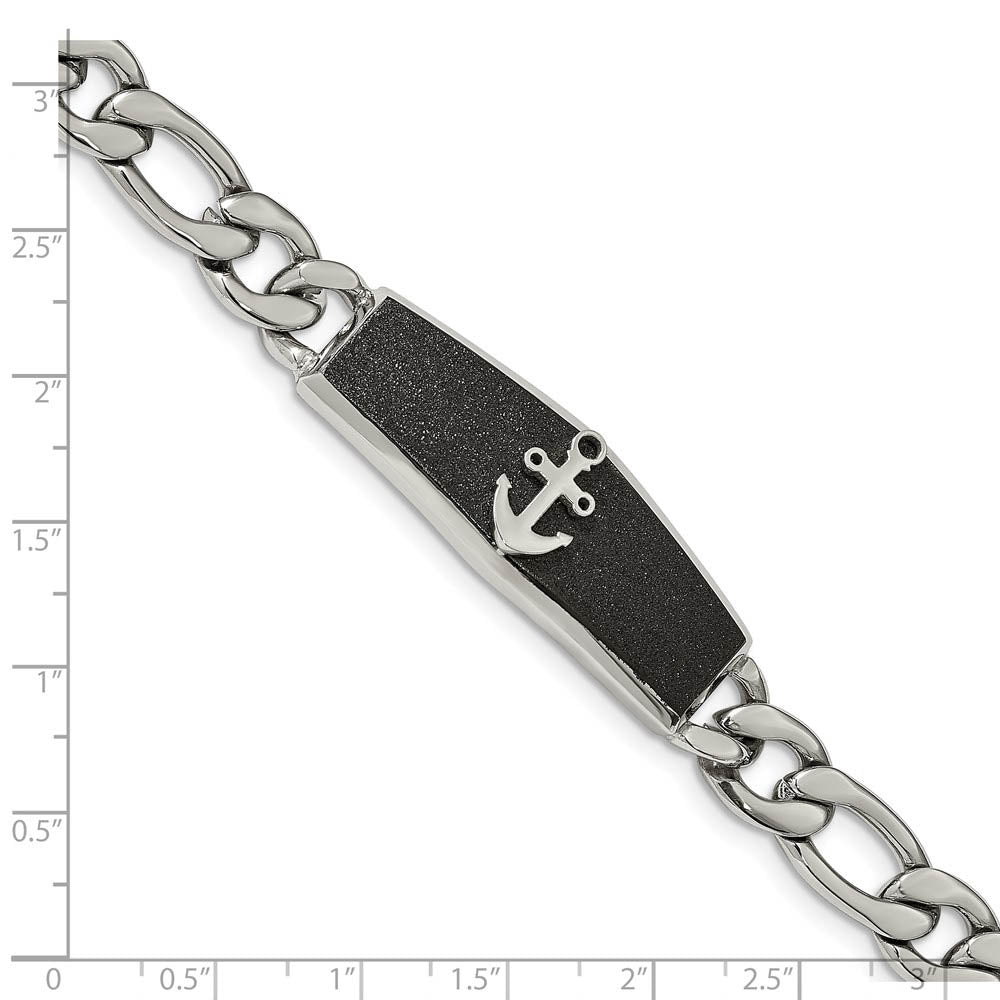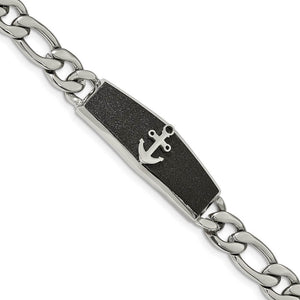Stainless Steel & Black Plated Anchor I.D. Figaro Bracelet, 8.5 Inch - Black Bow Jewelry Company