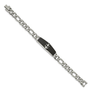 Stainless Steel & Black Plated Anchor I.D. Figaro Bracelet, 8.5 Inch