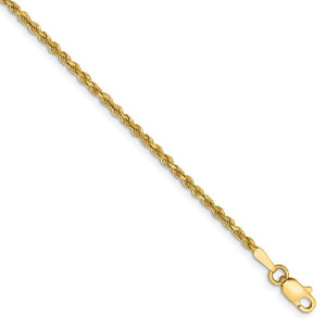 Twisting strands of 14k yellow gold form an intricate spiral pattern on this fabulous rope chain accented with a diamond-cut finish and finished with a lobster claw clasp. Designed to provide the perfect combination of beauty, strength and integrity, this solid link ankle chain is 1.75mm in width by 10-inches in length.