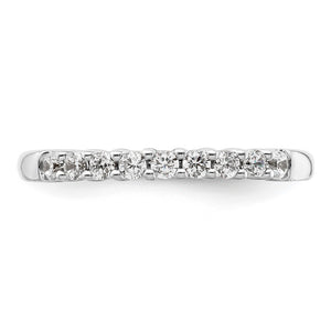 A simple but elegant style, this polished 2. Mm width tapered band is meticulously crafted from rhodium-plated 14k white gold and (shared-prong) set with 9 round white diamonds. The natural diamonds are 2mm in size, I1 in clarity, G-H in color and the total diamond weight is 1/3 carat.