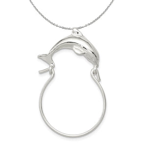 Combine your favorite charms together on this sterling silver charm holder pendant that unhooks at the top to create your own customized design. It features a polished dolphin with a hidden bail, which is perfect for beach or nautical themes and is approximately 22mm (7/8 Inch) in diameter. Includes a 1.25mm, 16 inch sterling silver cable chain.