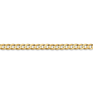 The open curb links on this classy 3.8mm solid chain are accentuated with a concave design and hand-polished to create a mirror-like finish. Created from 14k yellow gold and includes a secure, lobster-claw clasp. 7 inches in length.