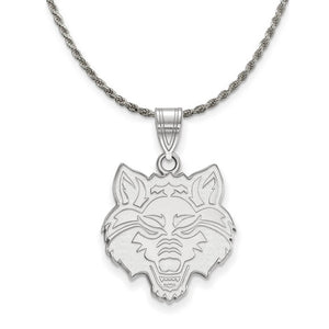 If you are a fan of Arkansas State University and the Red Wolves then you need to show your school spirit with this Arkansas State University pendant. We are a certified college jewelry retailer and this authentic item is officially licensed. It is crafted from Sterling Silver and crafted by LogoArt in the USA. Includes a flexible and strong diamond cut rope chain. This stunning chain is 2.25mm in width, 18 inches in length and features a sturdy lobster claw clasp. The chain is crafted in Italy.