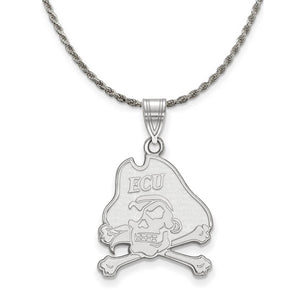 If you are a fan of East Carolina University and the Pirates then you need to show your school spirit with this East Carolina University pendant. We are a certified college jewelry retailer and this authentic item is officially licensed. It is crafted from Sterling Silver and crafted by LogoArt in the USA. Includes a flexible and strong diamond cut rope chain. This stunning chain is 2.25mm in width, 18 inches in length and features a sturdy lobster claw clasp. The chain is crafted in Italy.