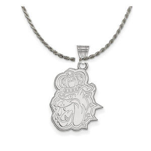 If you are a fan of James Madison University and the Dukes then you need to show your school spirit with this James Madison University pendant. We are a certified college jewelry retailer and this authentic item is officially licensed. It is crafted from Sterling Silver and crafted by LogoArt in the USA. Includes a flexible and strong diamond cut rope chain. This stunning chain is 2.25mm in width, 20 inches in length and features a sturdy lobster claw clasp. The chain is crafted in Italy.