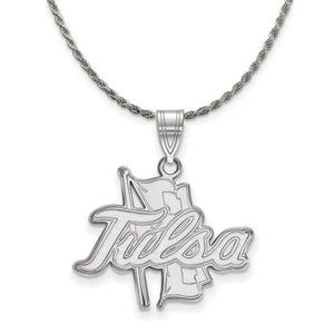 • If you are a fan of The University of Tulsa and the Golden Hurricanes then you need to show your school spirit with this University of Tulsa pendant. We are a certified college jewelry retailer and this authentic item is officially licensed. It is crafted from Sterling Silver and crafted by LogoArt in the USA. Includes a flexible and strong diamond cut rope chain. This stunning chain is 2.25mm in width, 20 inches in length and features a sturdy lobster claw clasp. The chain is crafted in Italy.
