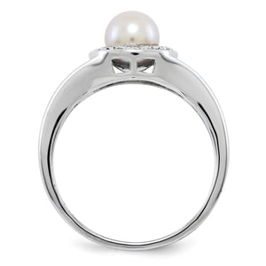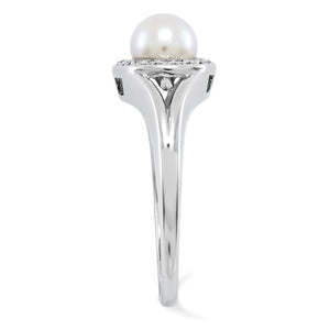 Sterling Silver .01 Ctw Diamond & Cultured Pearl Halo Ring