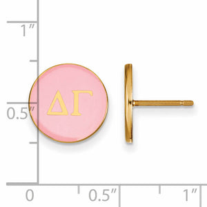 14K Plated Silver Delta Gamma Pink Enamel Disc Post Earrings