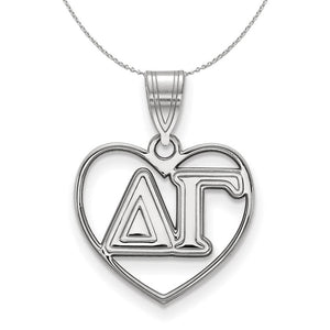 Show your greek life spirit with this Delta Gamma Sorority pendant necklace. It is crafted with rhodium plated sterling silver and without the bail is 15mm in height and 17mm in width (0.59 in x 0.67 in). With the bail, the measurements are 21mm in height and 17mm in width. We are a certified LogoArt retailer and this authentic item is licensed by the Delta Gamma Sorority and Greek Life. This pendant necklace is made the USA. Includes an 18 Inch, 1.25mm cable chain.