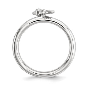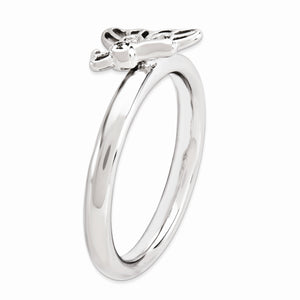 Create a look that is all your own with a fun assortment of rings that looks great alone or stacked in a collection to express your own unique style. This polished ring fashioned from tarnish resistant rhodium plated sterling silver features a 9mm butterfly pave set with three genuine diamonds and a 2. Mm width band. The natural white diamond is H-I in color, I3 clarity and the diamond weight is 0.15 carat. Guaranteed to fit together perfectly with all of the mix and match Stackable Expressions rings. This item is backordered. Please allow 7-10 business days for delivery