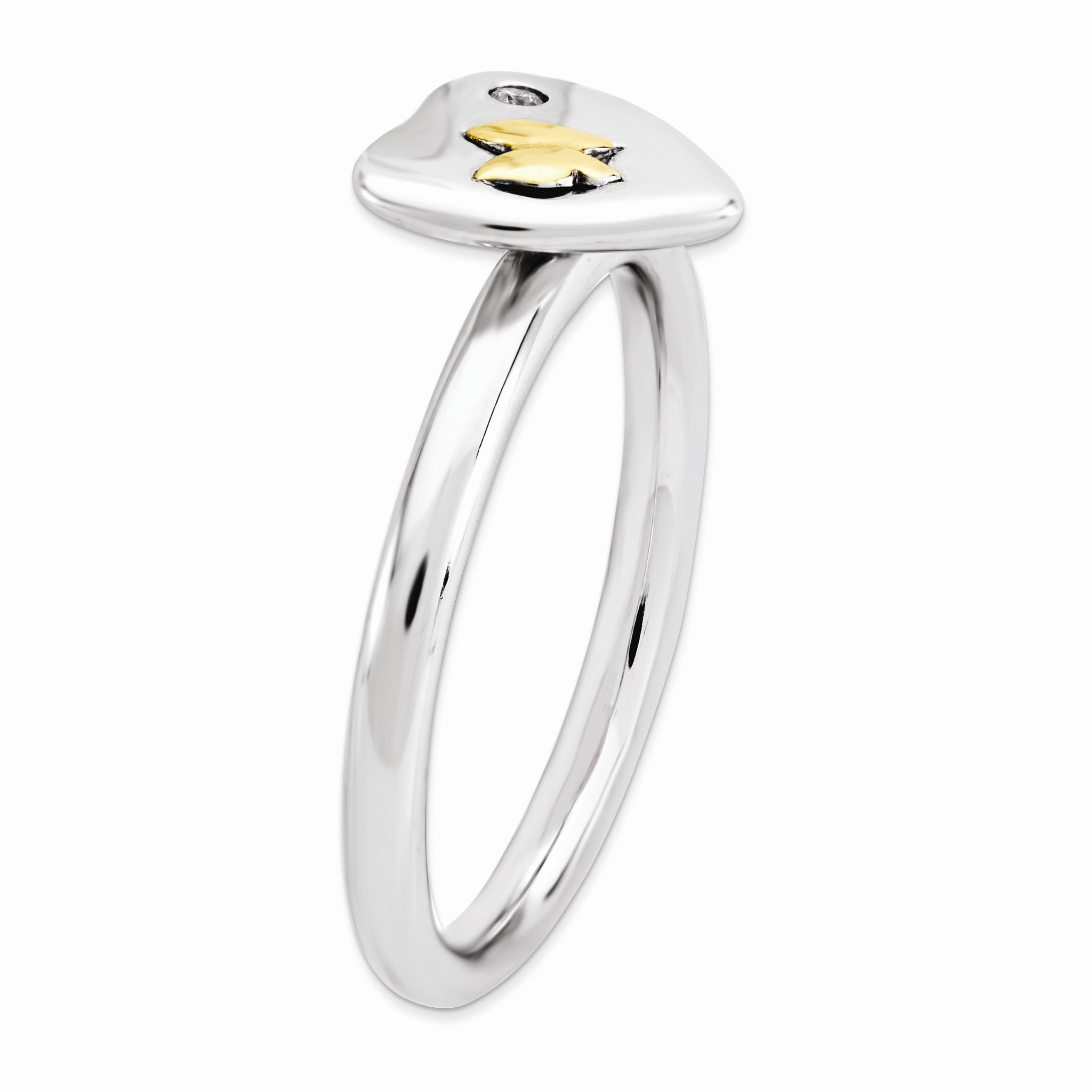 Sterling Silver & 14k Gold Butterfly .015 Ct Diamond Heart Stack Ring