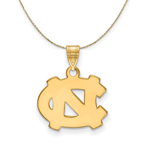 • If you are a fan of The University of North Carolina and the Tar Heels then you need to show your school spirit with this University of North Carolina pendant. We are a certified college jewelry retailer and this authentic item is officially licensed. It is crafted from 14k Yellow Gold and crafted by LogoArt in the USA. Includes a 18 inch, 0.8mm 14k yellow gold cable chain with a lobster clasp.