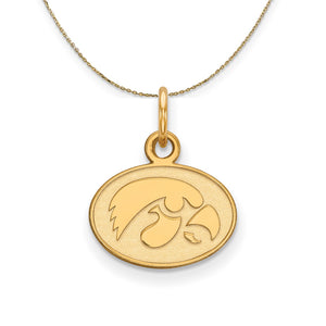 If you are a fan of The University of Iowa and the Hawkeyes then you need to show your school spirit with this University of Iowa pendant. We are a certified college jewelry retailer and this authentic item is officially licensed. It is crafted from 14k Yellow Gold and crafted by LogoArt in the USA. Includes a 24 inch, 0.8mm 14k yellow gold cable chain with a lobster clasp.