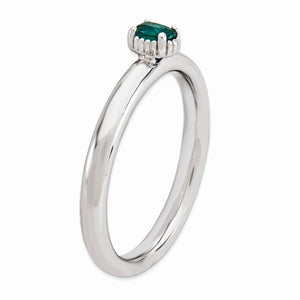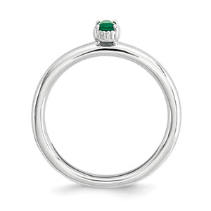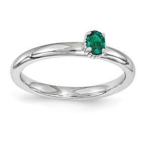 Sterling Silver Stackable Created Emerald Oval Single Stone Ring