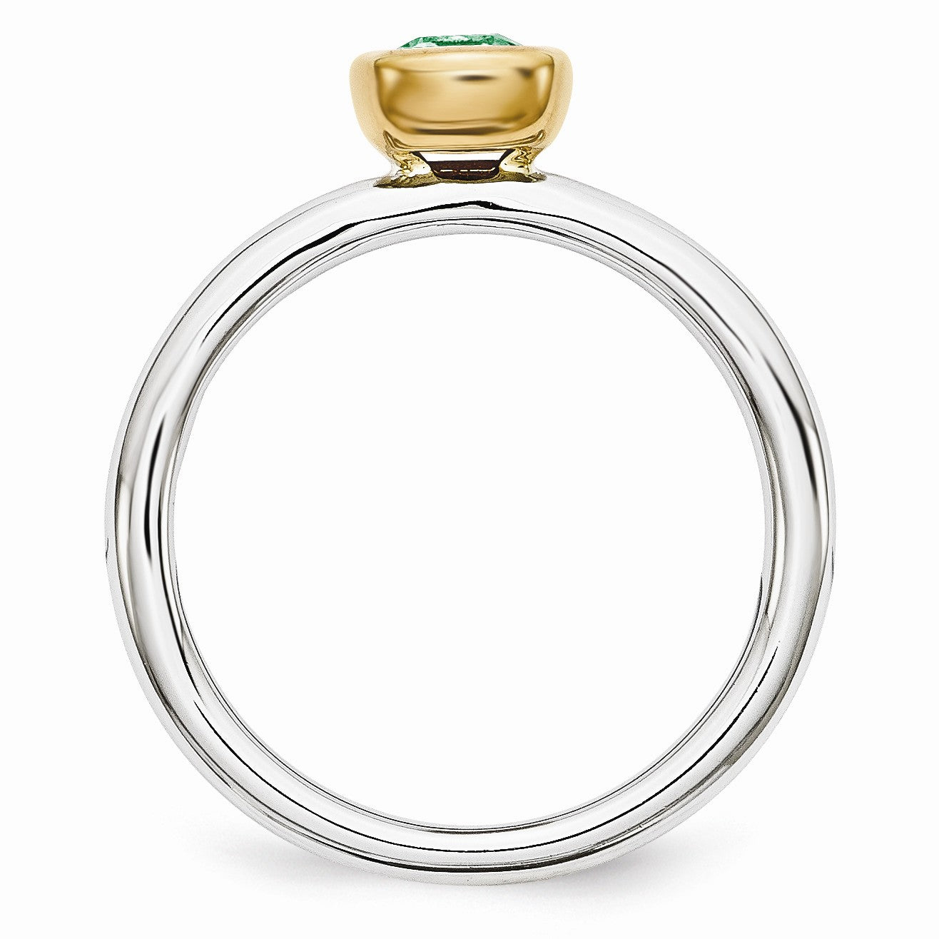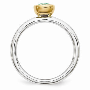 Two Tone Sterling Silver Stackable 5mm Cushion Created Emerald Ring