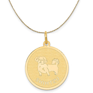 14k Yellow Gold Laser Etched Shih Tzu Disc Necklace, 19mm