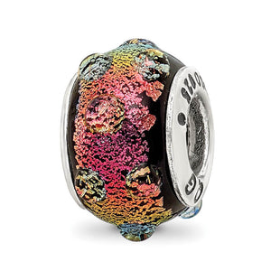 Rainbow Dotted Dichroic Glass Sterling Silver Bead Charm