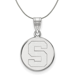 • If you are a fan of Michigan State University and the Spartans then you need to show your school spirit with this Michigan State University necklace. We are a certified college jewelry retailer and this authentic item is officially licensed. It is crafted from Sterling Silver and crafted by LogoArt in the USA. Includes an 18 Inch, 1.25mm sterling silver franco chain.