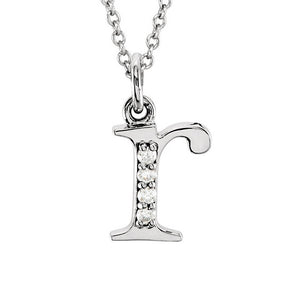 The Abbey 14k White Gold Diamond Lower Case Initial 'r' Necklace 16 In - Black Bow Jewelry Company