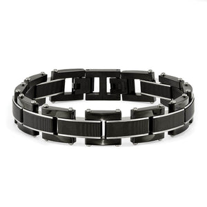 15mm Black Plated Stainless Steel & Carbon Fiber Link Bracelet, 8.5 In