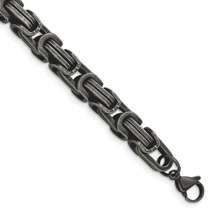 Mens 8.5mm Stainless Steel Antiqued Byzantine Chain Bracelet, 8.5 Inch