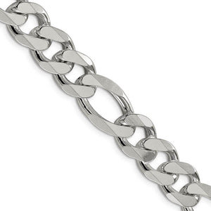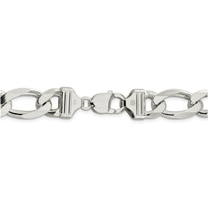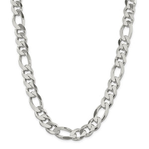 Generously sized, solid links of sterling silver create the sleek style of this masculine figaro chain that measures 13.5mm in width. A user-friendly, lobster clasp keeps it securely fastened. 26 inches in length.