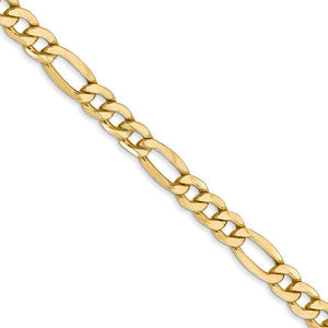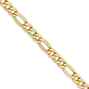 A set of three round links separated by one long oval link creates a sensational repeating pattern on this traditional figaro design. Measuring 5.75mm in width, this impressive 14k yellow gold semi-solid chain finished with a secure, lobster-claw clasp is hand-polished to give it a radiant finish. 18 inches in length.
