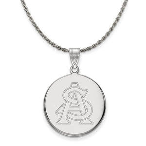 If you are a fan of Arizona State University and the Sun Devils then you need to show your school spirit with this Arizona State University pendant. We are a certified college jewelry retailer and this authentic item is officially licensed. It is crafted from Sterling Silver and crafted by LogoArt in the USA. Includes a flexible and strong diamond cut rope chain. This stunning chain is 2.25mm in width, 20 inches in length and features a sturdy lobster claw clasp. The chain is crafted in Italy.