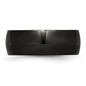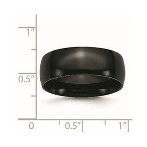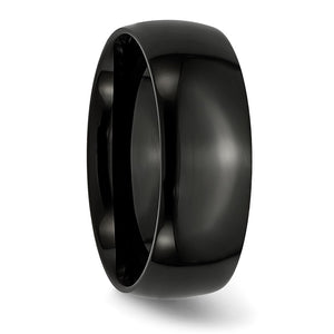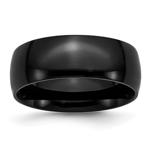 A traditional band set in black-plated 316L stainless steel featuring a classic dome style with a polished finish and a standard fit shank. This men's ring is approximately 8mm in width and is suitable for engraving.