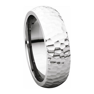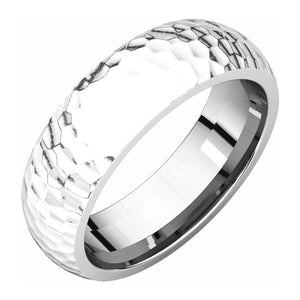 6mm 14K White Gold Hammered Half Round Comfort Fit Band