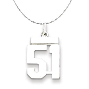 Silver, Athletic Collection Medium Polished Number 51 Necklace