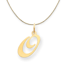 14k Yellow Gold, Ella Med Fancy Script Initial O Necklace