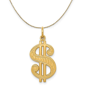 14k Yellow Gold Scroll Dollar Sign Necklace