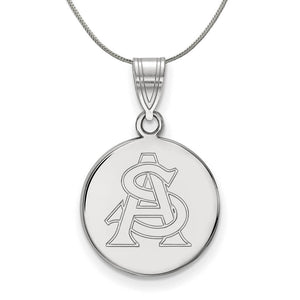 If you are a fan of Arizona State University and the Sun Devils then you need to show your school spirit with this Arizona State University necklace. We are a certified college jewelry retailer and this authentic item is officially licensed. It is crafted from Sterling Silver and crafted by LogoArt in the USA. Includes a 20 Inch, 1.25mm sterling silver franco chain.
