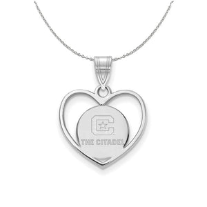 • If you are a fan of The Citadel and the Bulldogs then you need to show your school spirit with this heart necklace. We are a certified college jewelry retailer and this authentic item is officially licensed. The laser etched pendant is crafted from rhodium plated sterling silver. Includes an 18 inch long by 1.25mm wide sterling silver cable chain with a lobster clasp.