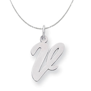 Indulge in a traditional initial charm that subtly enhances and personalizes your jewelry. Each classic script letter is approximately 18mm (11/16 inch) in length, fashioned from sterling silver with a high polished finish and includes a standard jump ring. Includes a 16 inch, 1.25mm sterling silver chain with a lobster clasp closure.