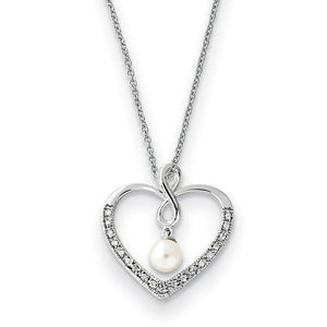 Sterling Silver, CZ & FW Cultured Pearl My Friend Heart Necklace, 18in