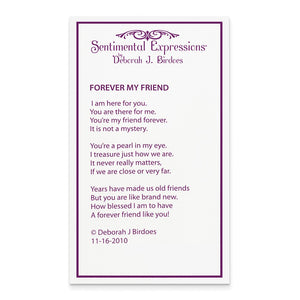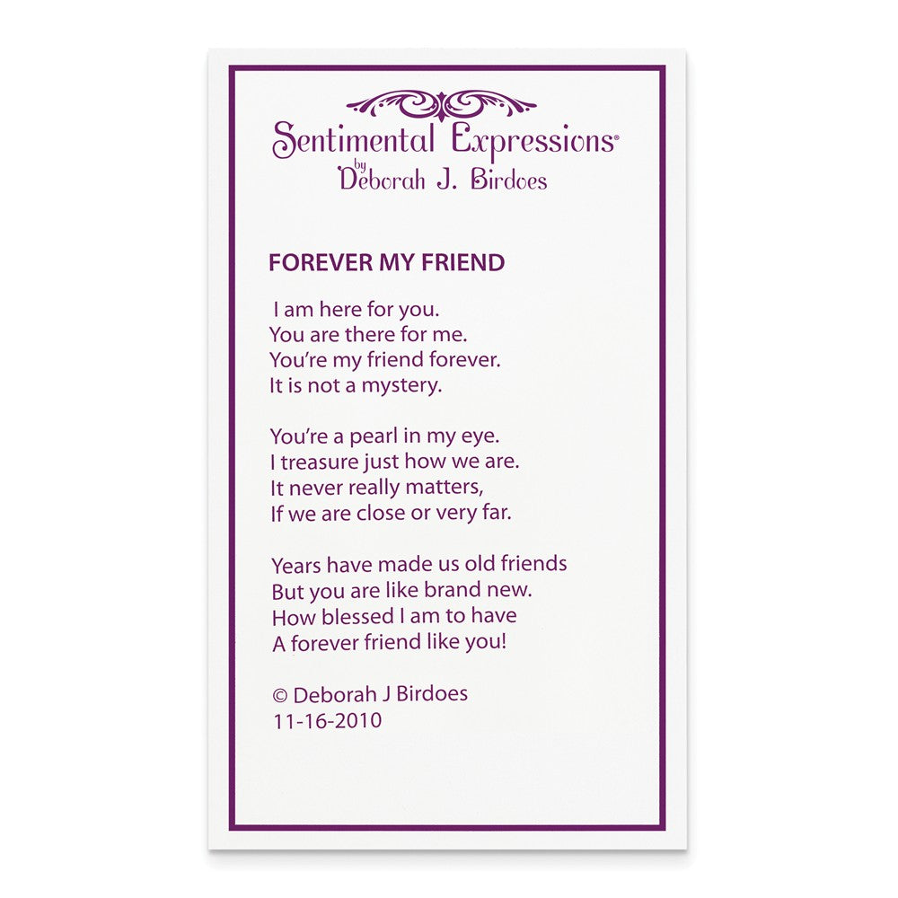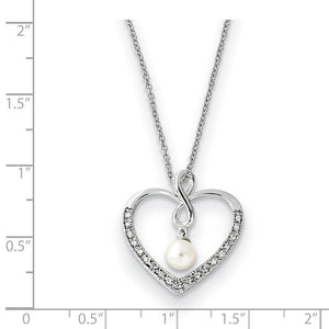 Dangling in the center of this 22mm (7/8 inch) open-heart pendant is a 5mm freshwater cultured white pearl. Designed from tarnish resistant rhodium plated sterling silver and prong set with 19 cubic zirconia stones. Each necklace includes a matching 1mm width, 18-inch long cable chain with a spring ring clasp and a card with the following poem written by the artist printed in English and Spanish. FOREVER MY FRIEND - I am here for you. You are there for me. You're my friend forever. It is not a mystery. You're a pearl in my eye. I treasure just how we are. It never really matters, if we are close or very far. Years have made us old friends but you are like brand new. How blessed I am to have a forever friend like you!