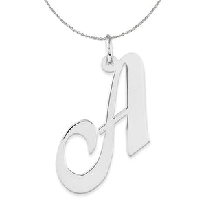 Sterling Silver, Ella Collection, LG Fancy Script Initial A Necklace