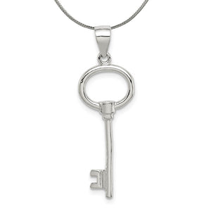 A simple token to symbolize love and desire! This skeleton key is crafted from polished sterling silver and measures 1 3/8 Inch x 7/16 Inch including the bail. Chain not included. Includes a 20 Inch, 1.25mm sterling silver franco chain.