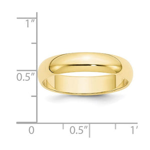 Sleek and simple with a classic half round design created from polished 10k yellow gold. This standard fit band is approximately 5mm in width by 1.4mm in thickness (standard weight). Suitable for engraving.