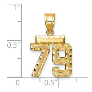 Celebrate your favorite sports player, lucky number or milestone date in your life with a prominent 14k yellow gold charm. Each satin and diamond cut number is approximately 12mm (7/16 Inch) in length, which is finished with a 3mm top bar and tapered bail giving it an overall length of approximately 26mm (1 Inch). Made in the U.S.A. Chain not included. This is a made to order item and is estimated to ship in about 10 days. Please email service@theblackbow.com for more details.