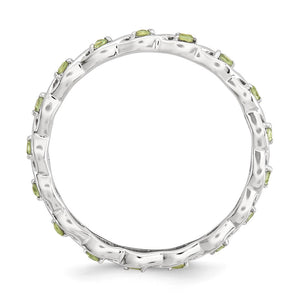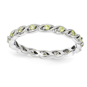 Express your own style with a fresh look for any season by mixing and matching different designs, widths and colors to suit your mood. This 2. Mm width band designed from tarnish resistant rhodium plated sterling silver features a twist design prong set with genuine peridot. The natural untreated gemstones are 1. Mm in size and the total gemstone weight is 0.5 of a carat. Color range varies on all natural stones so please allow for slight variations in shades. Wear it alone or in meaningful combinations, guaranteed to fit together perfectly with all of the mix and match Stackable Expressions rings.