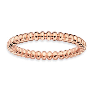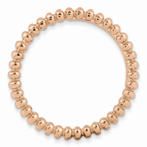 Make it simple and stylish with bands of different textures, finishes, widths and colors! This 14k rose gold plated sterling silver band features a beaded design with a high polished finish that measures 2.5mm wide. Guaranteed to fit together perfectly with all of the mix and match Stackable Expressions rings. This item is backordered. Please allow 7-10 business days for delivery